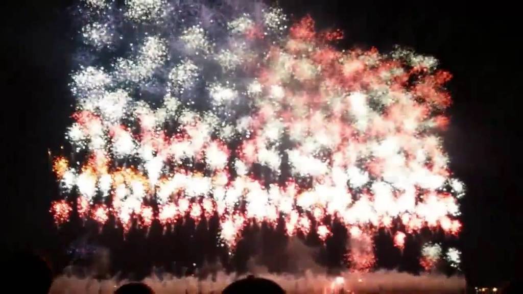 Several go off at once. Before they are done more take off. Thunder echos across the field as reds and blues and all colours light up the stands and all of us in them.